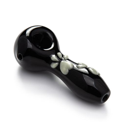 Black Glass Spoon Pipe Night_luminous White Paw Print Design UV Glass Hand Tobacco Pipes Heady Glass...