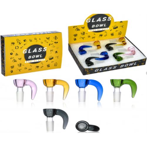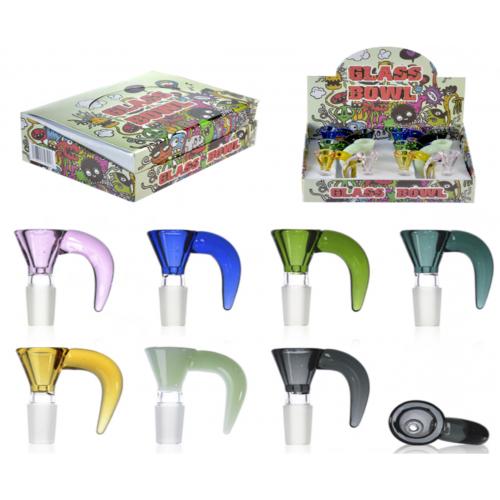 Colored Heady Glass Bowl With Big Ox Horn Handle 14mm Male Joint For Glass Bubbler And Ash Catcher G...