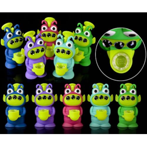Green Faced Monster Silicone Water Pipe Hookah Tobacco Glass Bongs Dabs Rigs with Glass Bowl