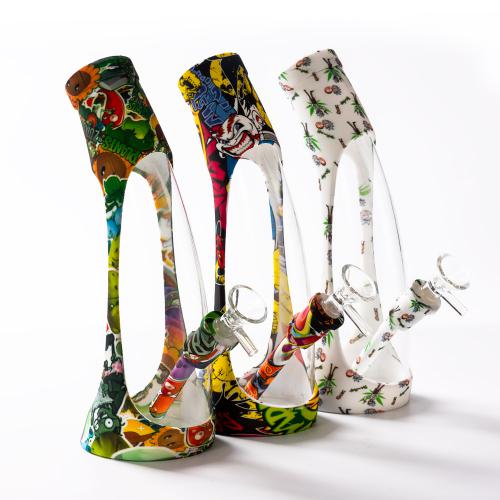 Silicone Bong 7" Water Transfer Printing Hookah Shisha Oil Dab Rigs With Glass Bowl Smoking Pipe Gla...