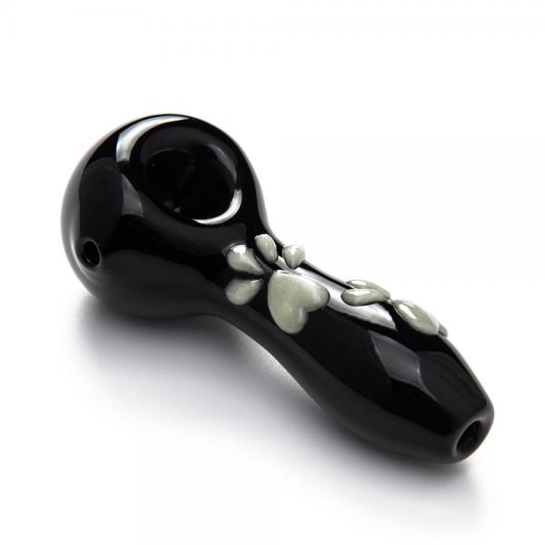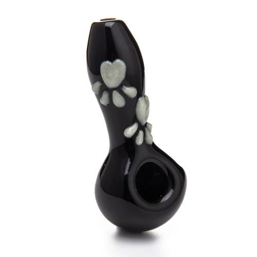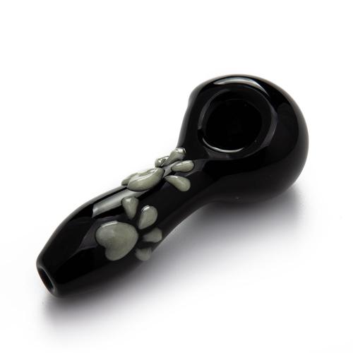 Black Glass Spoon Pipe Night_luminous White Paw Print Design UV Glass Hand Tobacco Pipes Heady Glass Smoking PipeFeatures of Glass Hand Pipe: