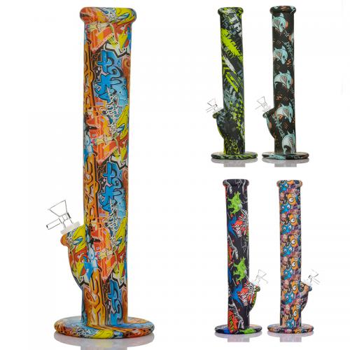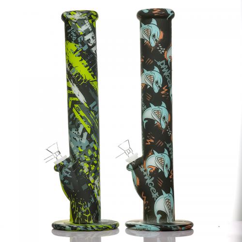 Glow In The Dark Silicone Water pipe Staright Bong 14" Non Fading Printing Silicone Bong Glass Nong Dab Rig HookahFeatures of WTP Silicone Water Pipe :