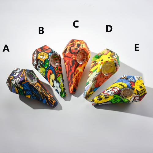 4.5" Silicone Hand Pipe Water Transfer Printing With Glass Bowl Silicone Water Pipes Oil Rig Silicone BongsFeatures of Silicone Hand Pipe :