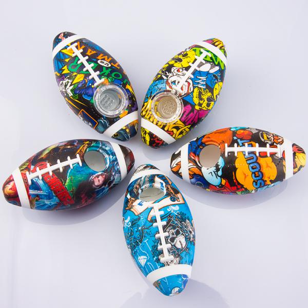 Silicone Rugby Hand Pipe Water Transfer Printing Length 100mm+Glass Bowl Tobacco PipesFeatures of Silicone Hand Pipe :