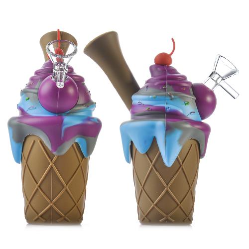Hot Sell Ice Cream Bubbler Water Pipes Multiple Colorful Silicone Oil Rigs Bong Hookahs Free Glass Bowl Length 170mmFeatures of Silicone Water Pipe :