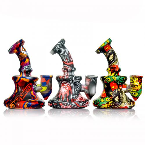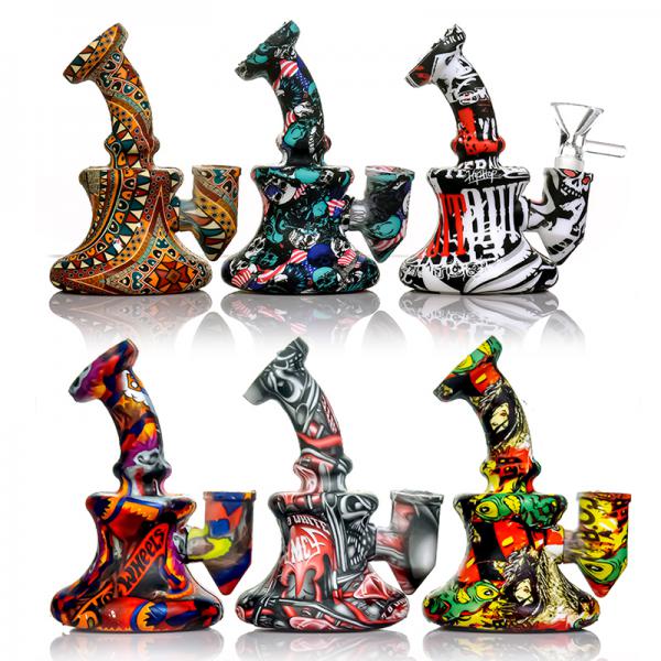 5.1" Water Transfer Printing Silicone Banger Hanger With Shower Head Removable For CleaningFeatures of Silicone Water Pipe :