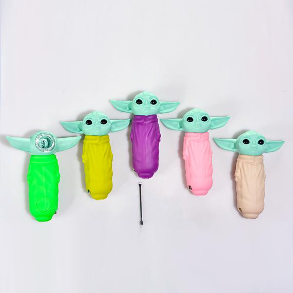 Grogu Silicone Hand Pipe With Glass Dish & Stainless Steel Dabber For SmokeFeatures of Silicone Hand Pipe :