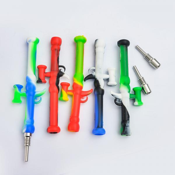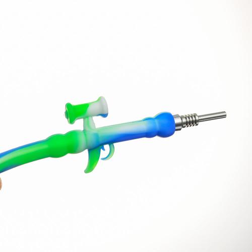 Gun Shape Single Silicone Nectar Collector Pipe Equipped With 10mm ceramic Tip Dab Straw SiliconeFeatures of Silicone Nector Collector :