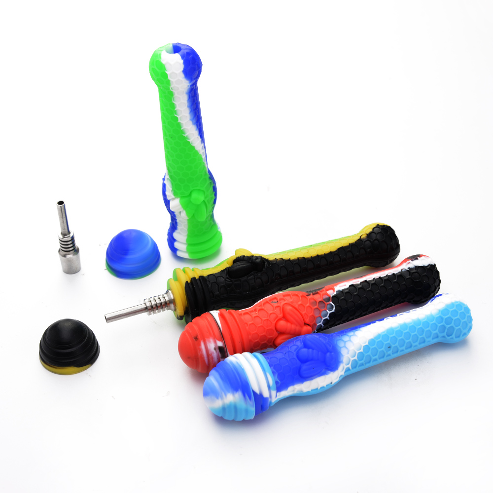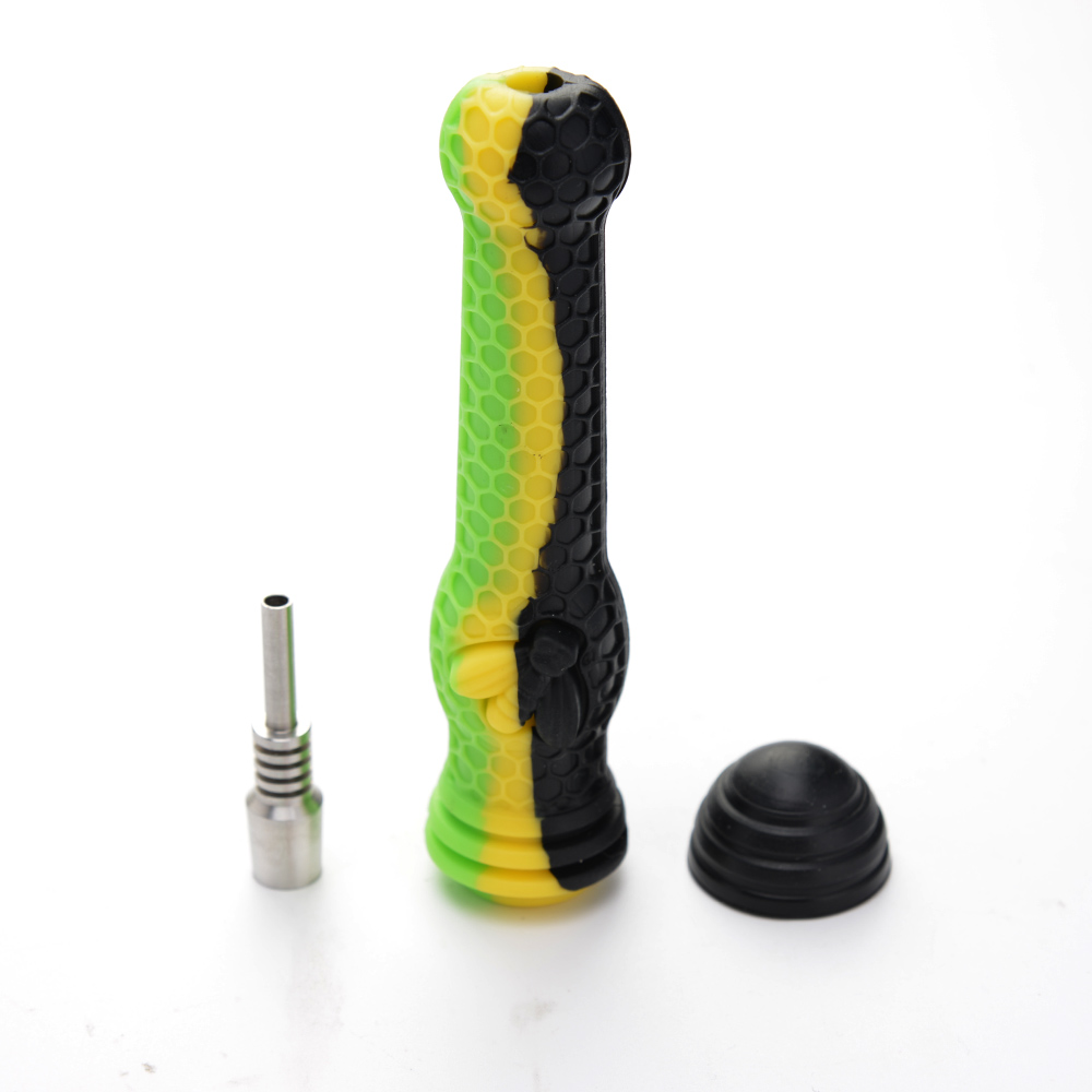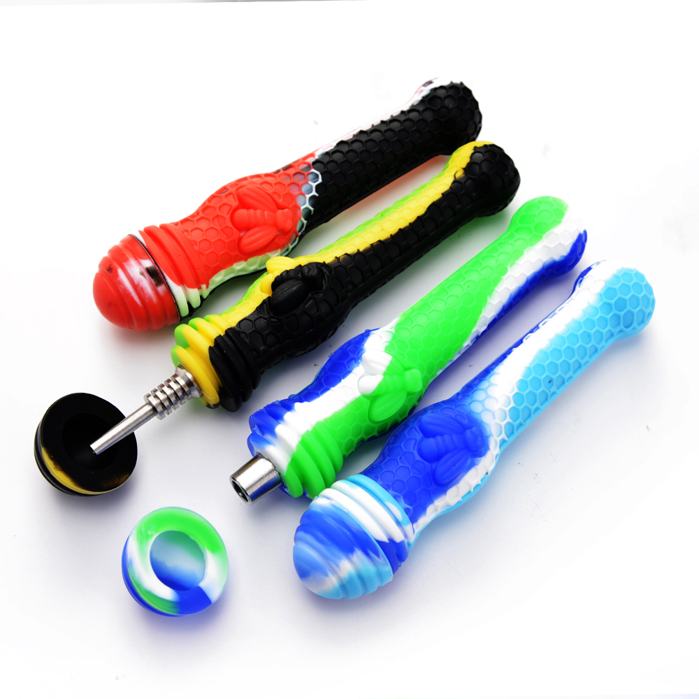 > Stocks in LA > Silicone Products > Silicone NC > 5.5" Silicone Pipe With Stainless Steel Tip Nail Dab Straw Oil Rigs Silicone Smoking Pipe Glass Pipes NC Kits