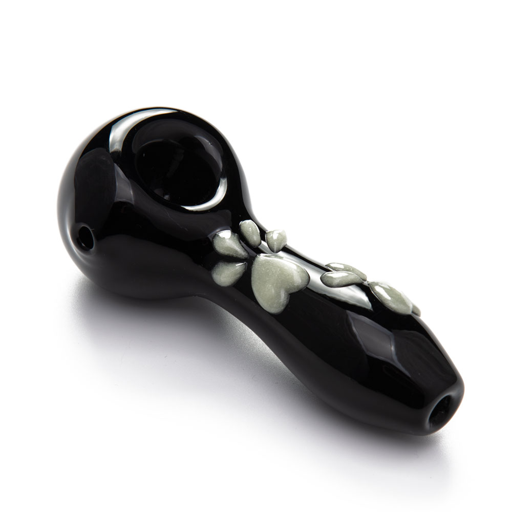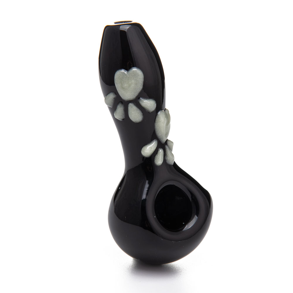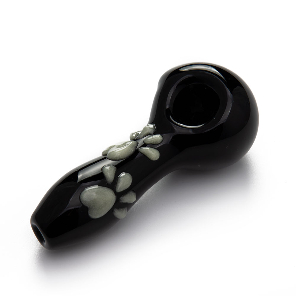 > Stocks in LA > Glass Products > Glass Hand Pipes > Black Glass Spoon Pipe Night_luminous White Paw Print Design UV Glass Hand Tobacco Pipes Heady Glass Smoking Pipe