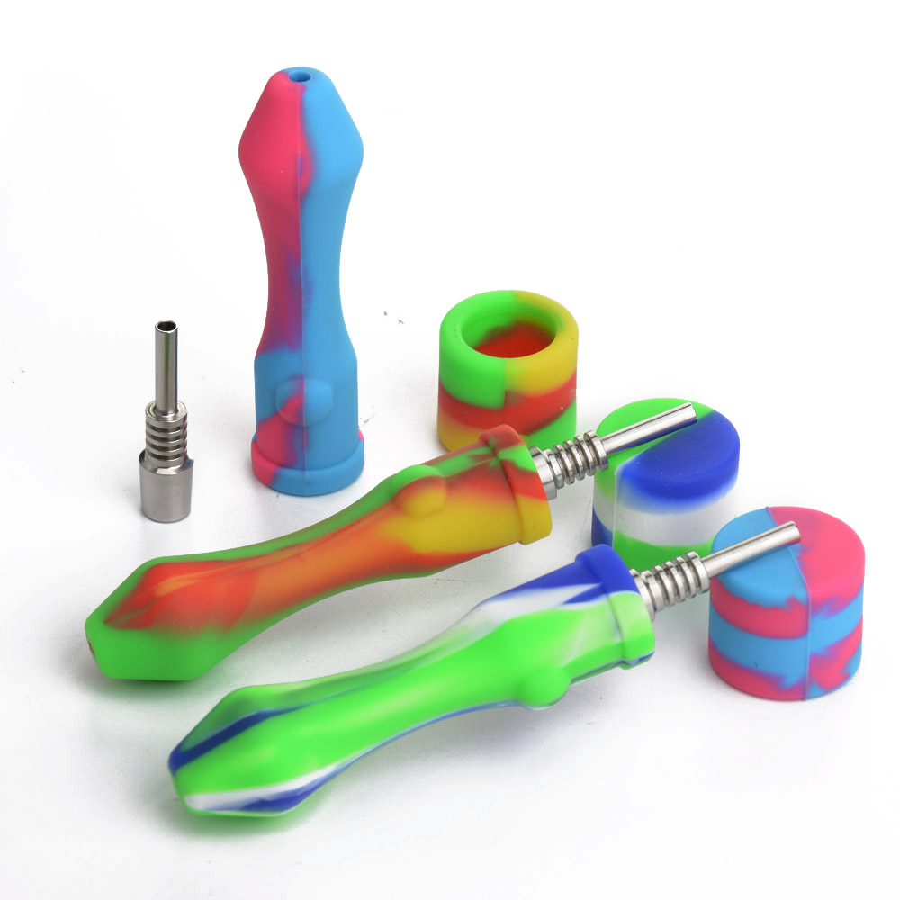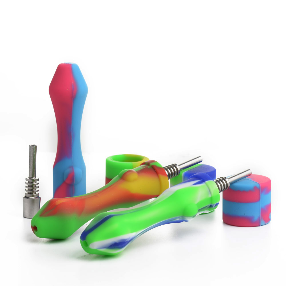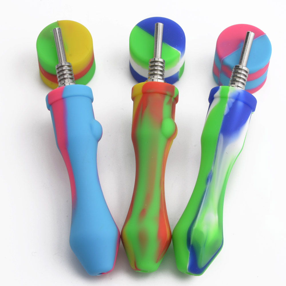 > Stocks in LA > Silicone Products > Silicone NC > 4.3" Silicone Pipe With Stainless Steel Tip Nail Dab Straw Oil Rigs Silicone Smoking Pipe Glass Pipes NC Kits