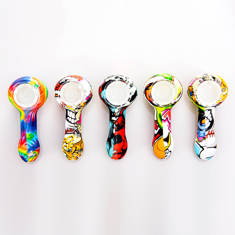 > Stocks on the Way > Silicone Products > Silicone Hand Pipes > 3" Silicone Smoking Pipe + Glass Bowl Water Transfer Printing Portable Silicone Hand Pipe Glass Pipe Smoke