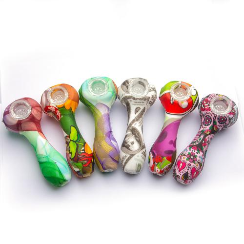 > Stocks on the Way > Silicone Products > Silicone Hand Pipes > Silicone Smoking Pipe + Glass Bowl Water Transfer Printing Portable Silicone Hand Pipe Glass Pipe Smoke