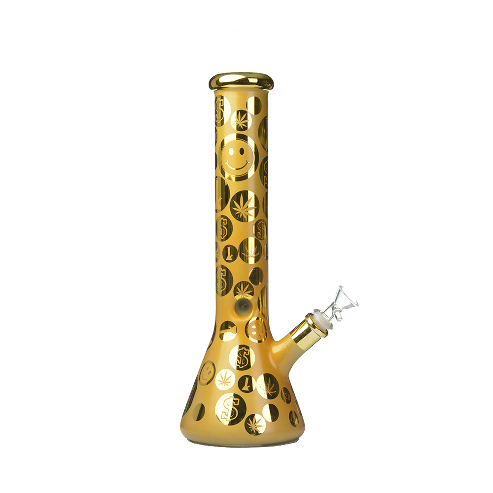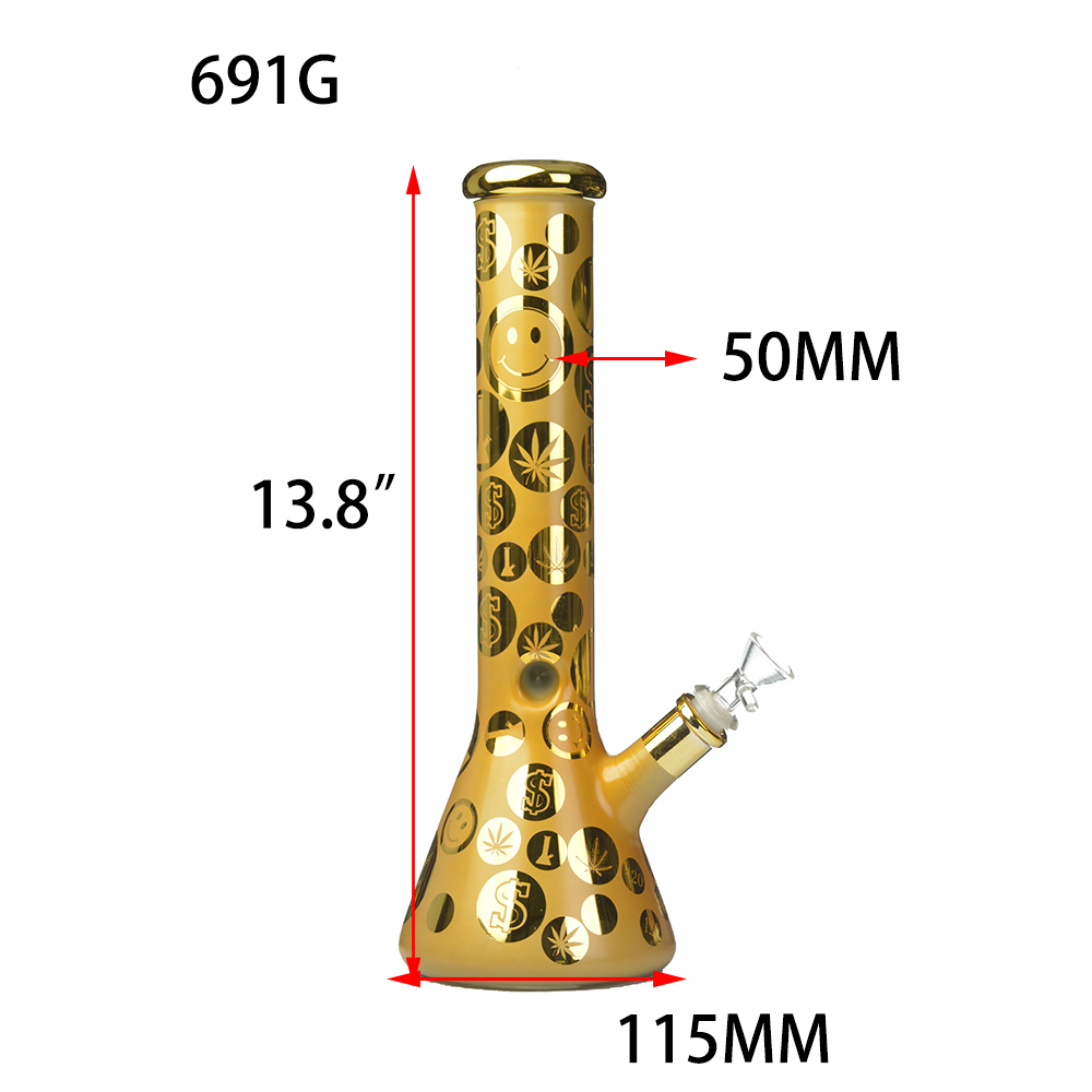 > Stocks in LA > Glass Products > Glass Water Pipes > 13.7" Glass Water Pipe With Electroplante And Sand Blasting Craft Glass Down Stem & Glass Bowl 19mm Female Joint