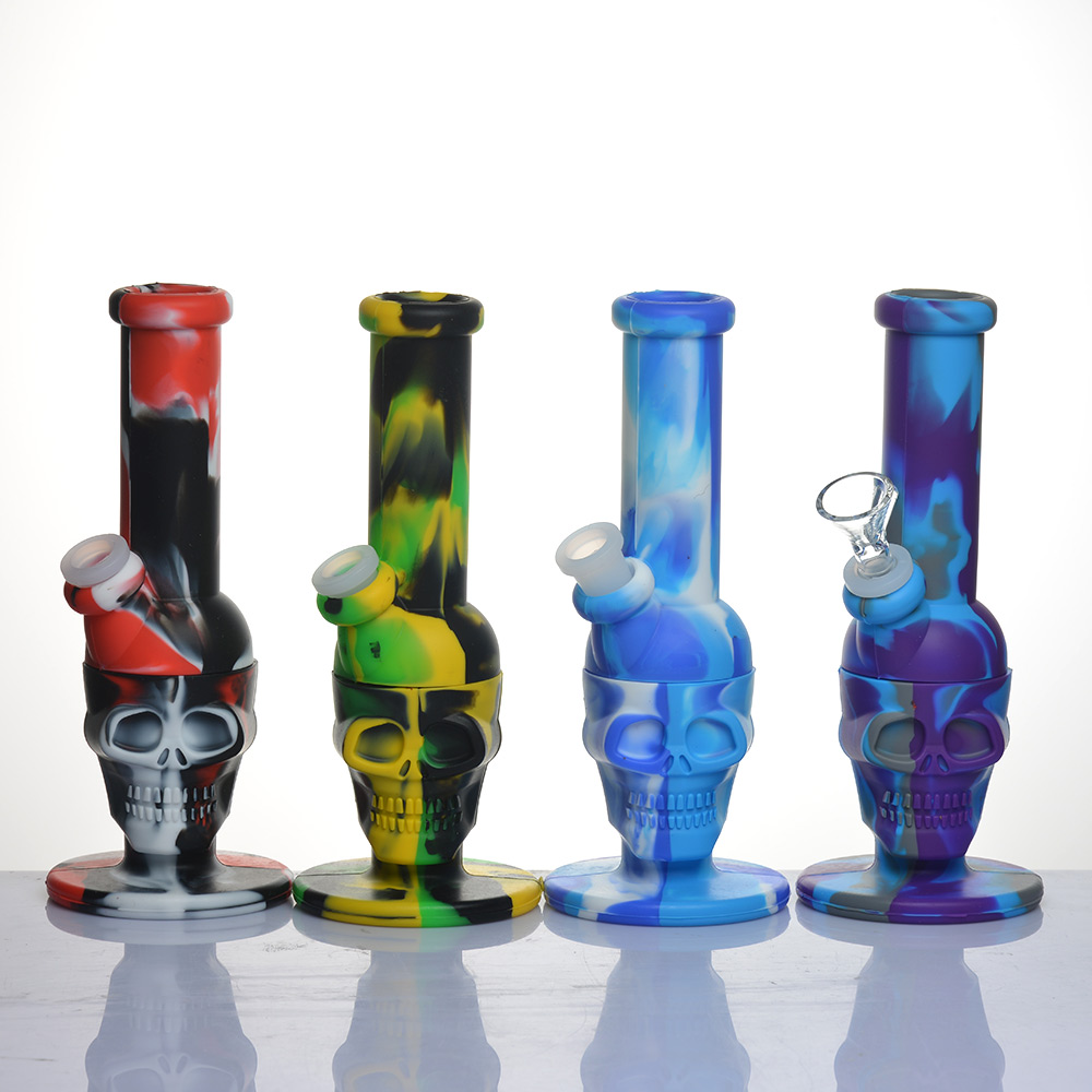 > Stocks on the Way > Silicone Products > Silicone Water Pipes > 8.2" Skull Silicone Water Pipe With Silicone Down Stem & Glass Bowl Glass