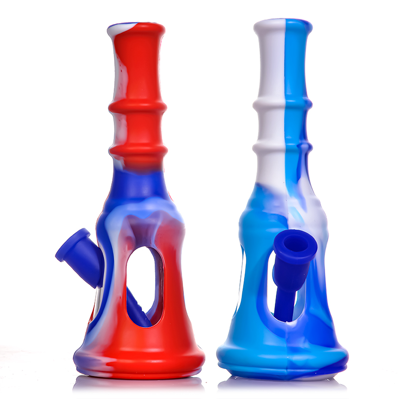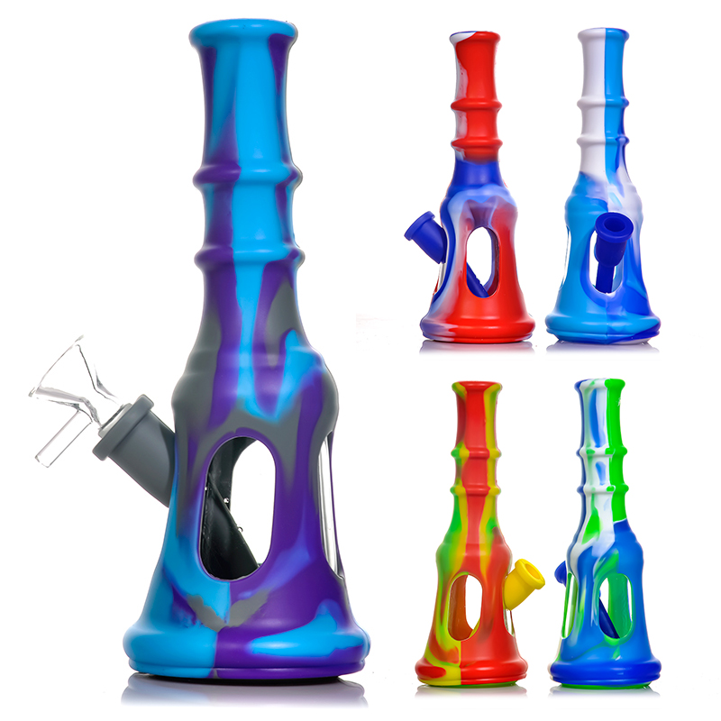 > Stocks in LA > Silicone Products > Silicone Water Pipes > 8" Silicone Water Pipe With Glass Bowl Silicone Oil Rigs Food Grade Silicone Bongs