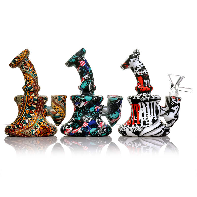 > Stocks in LA > Silicone Products > Silicone Water Pipes > 5.1" Water Transfer Printing Silicone Banger Hanger With Shower Head Removable For Cleaning