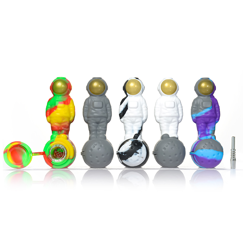 > Stocks on the Way > Silicone Products > Silicone Hand Pipes > Spaceman Series Portable Astronaut Moon Silicone Hand Pipe With Glass Dish & Stainless Steel Tip