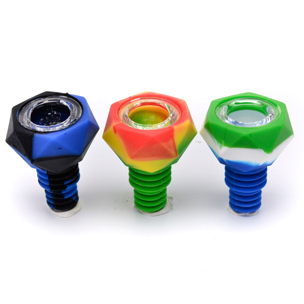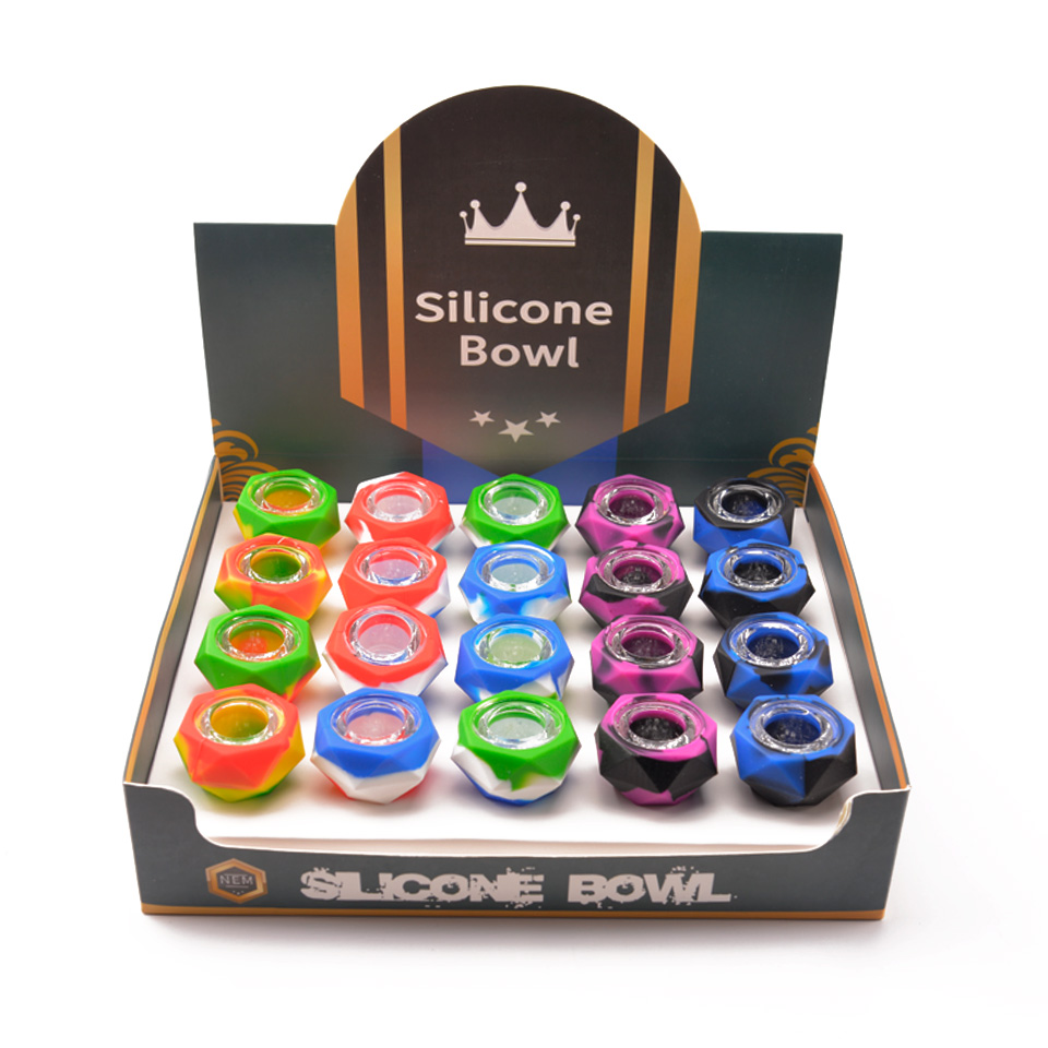 > Stocks in LA > Silicone Products > Silicone Accessories > 14mm 19mm Male Silicone Bowl With Glass Dish Oil Dab Rigs For Water Pipes