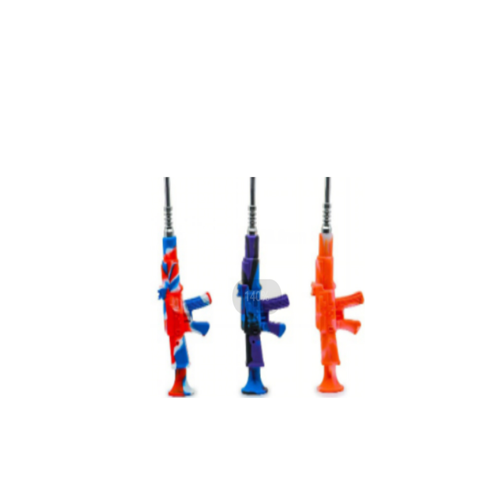 > Stocks in LA > Silicone Products > Silicone NC > Machine Gun Silicone Nector Collector Design Water Pipe With Stainless Steel Tip Dab Rigs