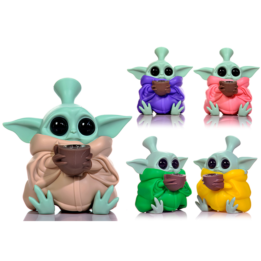 > Stocks on the Way > Silicone Products > Silicone Hand Pipes > 4.7" Grogu Silicone Pipes Baby Silicone Tobacco Hand Pipe With Glass Dish Water Bong Oil Burner Rigs Portable Smoking Ac