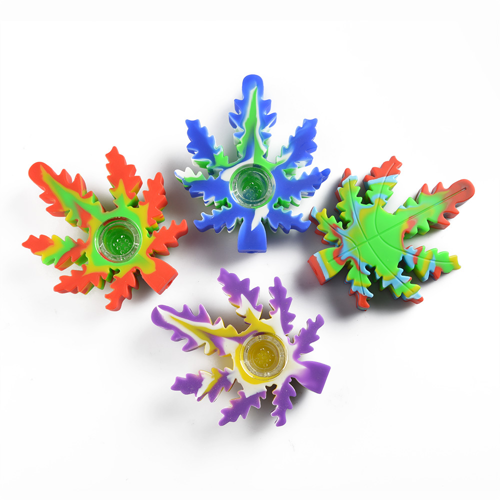 > Stocks in LA > Silicone Products > Silicone Jars & Pads > 4" Leaf Smoking Pipe Hand Pipes Silicone Spoon Pipe Oil With Glass Bowl Portable Hookah Unbreakable Heat Resistant