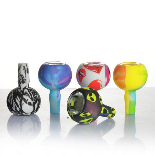 > Stocks in LA > Silicone Products > Silicone Accessories > 14mm Male Silicone Glass Bowl Dish Wig Wag Water Transfer Printing Bongs Oil Dab Rigs Water Pipes