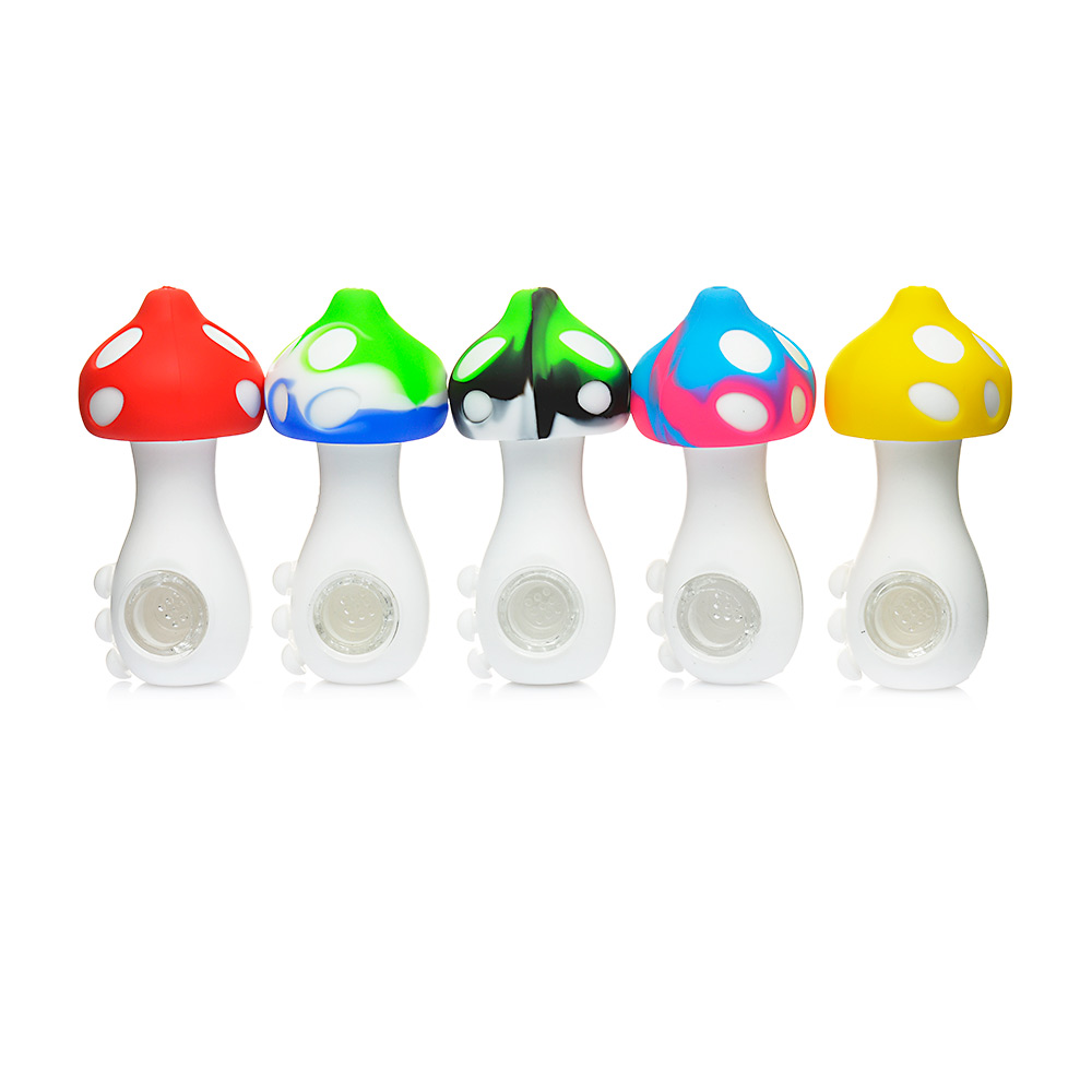 > Stocks on the Way > Silicone Products > Silicone Hand Pipes > Mushroom Silicone Tobacco Hand Pipe With Glass Dish Water Bong Oil Burner Rigs Portable Smoking Accessories