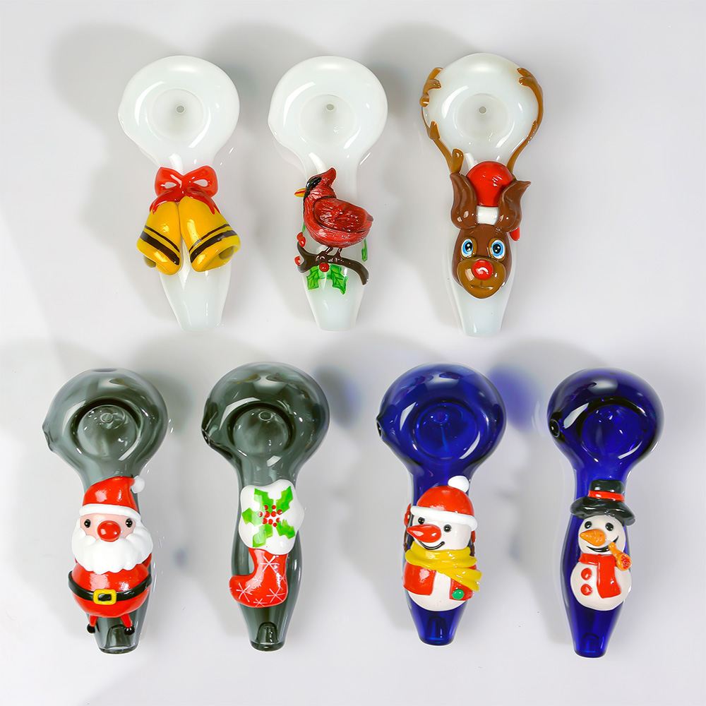 > Stocks in LA > Glass Products > Glass Hand Pipes > Christmas Style Clay Glass hand Pipes Pyrex Thick Dry Herb Tobacco Portable Hand Tube Smoking