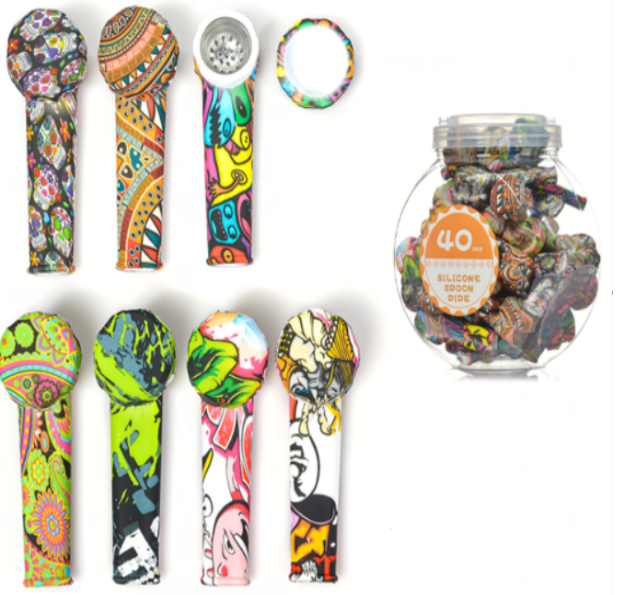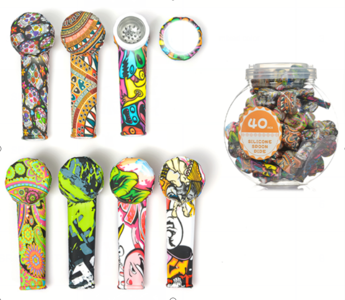 > Stocks on the Way > Silicone Products > Silicone Hand Pipes > 3.3 Inch Silicone Hand Pipe Water Transfer Printing With Metal Bowl And Silicone Cap with Jar