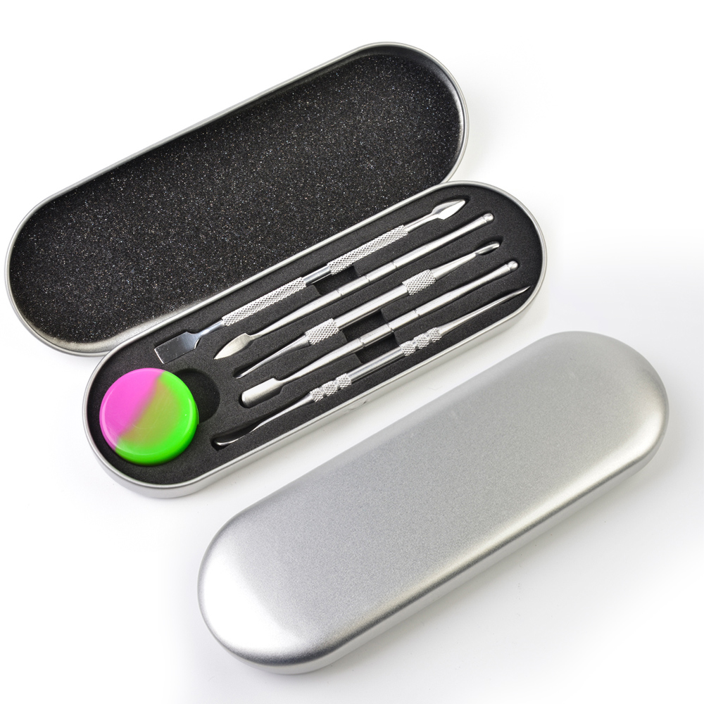 > Stocks on the Way > Metal Dabbers & Nails > Stainless Steel Nails > Stainless Steel Wax Dabber Tool Kit Set Container Bag Jar Dry Herb Tobacco Oil Rigs Dab Nail Pipes Smoking Accessories